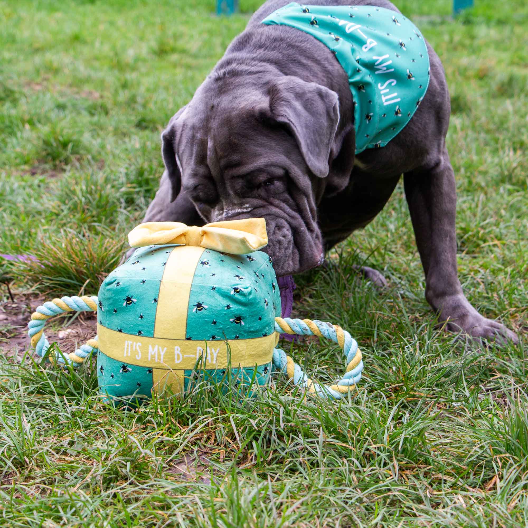 -Pawty Time Tugger is a rope toy that is ideal for retrieval and tugging