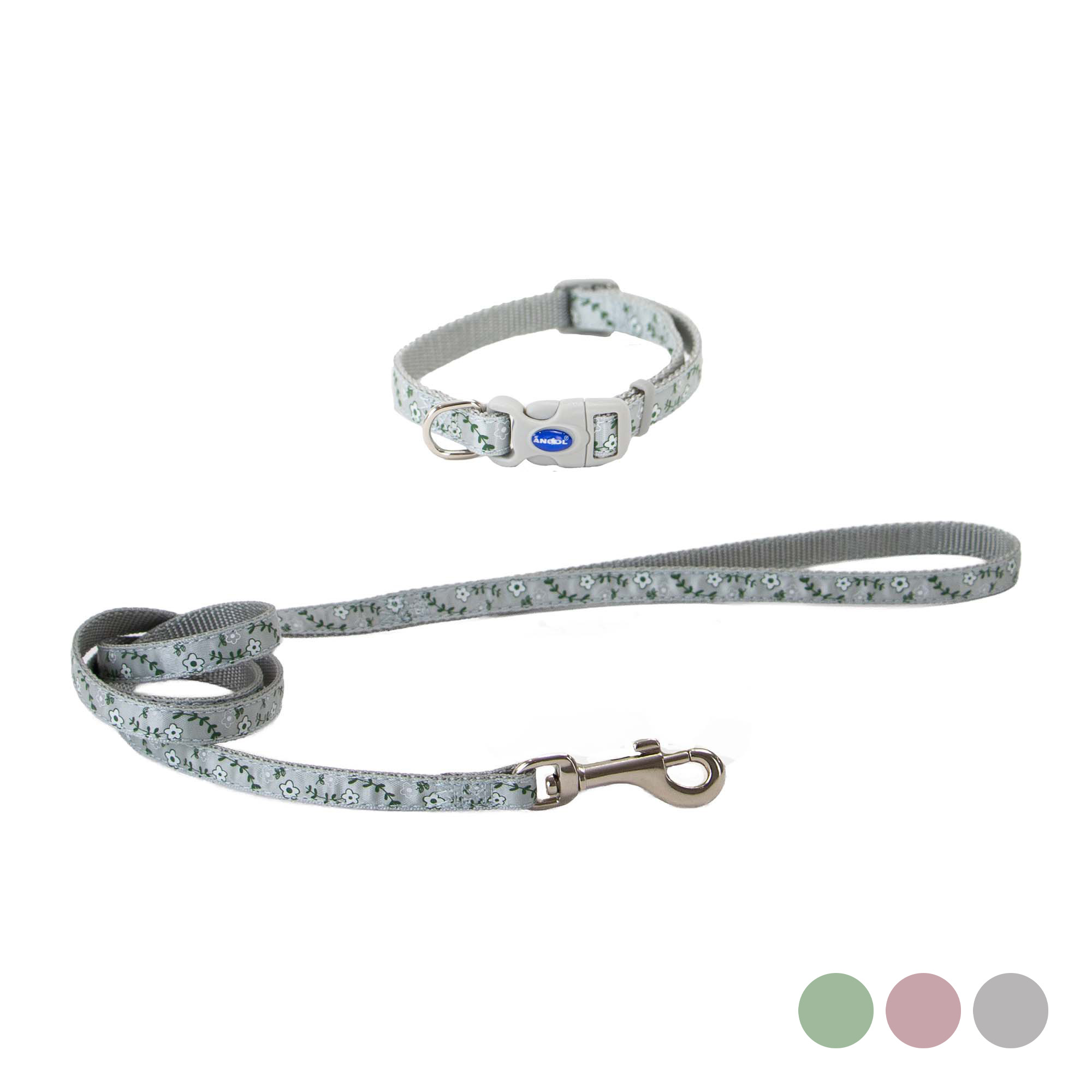 Small Bite Floral Collar Lead Set Pebble