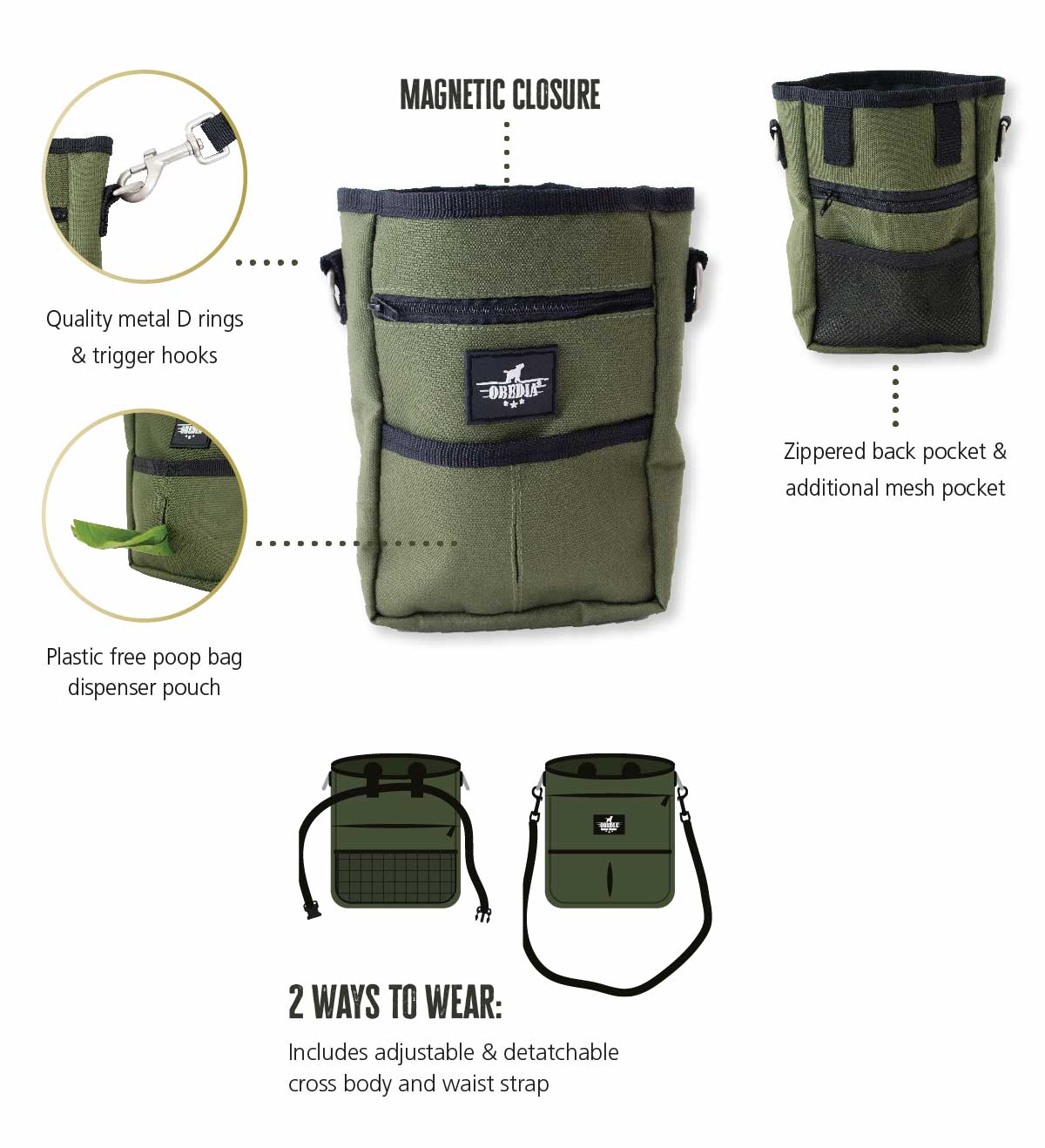 - Strong magnetic closure - easy access to treats while training